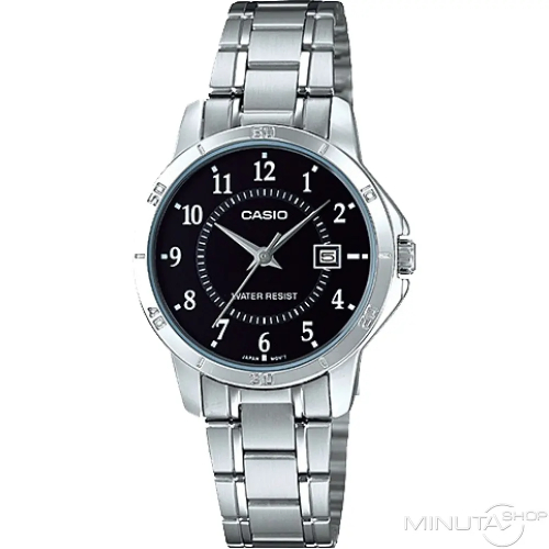 Casio Women's LTP-V004D-1BUDF - 35.2mm Case - Stainless Steel Band - Date Display - Black Dial - Quartz Movement - Mineral Glass - Water Resistant - Approx. battery life: 3 years
